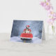 Cartão Cão Boston Terrier na neve sentado no Natal