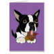 O cão de filhote de cachorro engraçado adorável do terrier de Boston que come trabalhos artísticos originais do cone do sorvete do chocolate é óptimo para amantes do cão