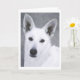 Cão de german shepherd branco bonito em um cartão. Salvamento do apoio WGSD.