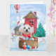 Cartão Cão maltês na casa de Natal na neve