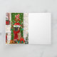 Cão Pastor Alemão Natal sentado fora de casa decorada com coroa de Natal, árvore de Natal é uma ideia perfeita de presente de Natal para amantes de cães.