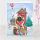 Cartão Cão Pequinês na Casa de Natal na Neve