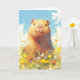 Este delicioso cartão de saudação apresenta um capivara alegre em pé orgulhosamente em meio a um vibrante campo de flores silvestres, olhando com uma expressão calorosa e amigável. Contra um céu azul brilhante, a cena exala alegria e paz, capturando a personalidade adorável do capivara. Com seu estilo de ilustração detalhado e caprichoso, este cartão é perfeito para amantes de animais e entusiastas da natureza. Seja para um aniversário, agradecimento ou apenas para alegrar o dia de alguém, este cartão traz um toque de charme e calor, tornando-o uma escolha ideal para fãs de capivaras e qualquer pessoa que aprecie arte animal adorável.