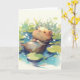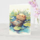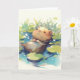 Esta charmosa carta de saudação de capybara captura um momento sereno de uma capivara flutuando pacificamente numa lagoa, cercada por almofadas de lírios, com uma expressão alegre no rosto. O estilo aquoso suave e a cena relaxada evocam tranquilidade e alegria, fazer-a uma carta perfeita para a natureza e amantes de os animais. Ideal para todas as ocasiões, este cartão traz um sentimento de calma e relaxamento, celebrando a natureza pacífica dos capibaras. Uma escolha encantadora para qualquer um que aprecie a arte bizarra e engraçada de animais.