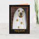 Quando o Halloween aparece, Riley, meu Ouro Retriever se esconde. Alguma coisa sobre vestir uma folha não é interessante para ela. Eu tenho que suborná-la com muitas guloseimas!