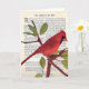 Um pássaro vermelho americano também conhecido como Cardinal está na frente e no lado esquerdo interno do meu cartão de saudação. O cartão está em branco por dentro. Personalize com seu próprio texto.