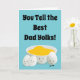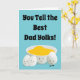 Um cartão de Dia do Pai engraçado com personagens de desenho animados de ovo. A frente do cartão diz "Diga aos melhores gemas do Pai!" e o dentro diz: "Eles são ótimos! Feliz Dia dos Pais". As palavras podem ser personalizadas.