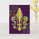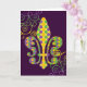 Os lotes do roxo, do verde e do ouro "pontos" enchem esta flor de lis para o carnaval. "Um design original de terça-feira gorda" no roupa, nos t-shirt, nos bonés, nas sacolas para sua miçanga do carnaval, nos cartões, nos convites, nos selos postais projetados e nos presentes, que você pode personalizar e adiciona seu próprio texto. Tenha o divertimento e o carnaval feliz!