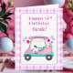 Celebre seu grande 5-1 com uma carta tão divertida quanto ela! Este design único apresenta um carrinho de golfe festivo, decolado com presentes coloridos, bolo de aniversário e champanhe espumante. Uma escolha perfeita para qualquer mulher que viva e respire golfe!