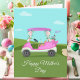 Este charmoso carrinho de golfe rosa, completo com mimosas, panquecas, uma cascata de flores e um pino "Mãe", cria um Cartão de Saudação do Dia das Mães, verdadeiramente único e bonito.