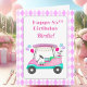 Celebre seu fabuloso 85 com um cartão de aniversário tão divertido e vibrante quanto ela é! Apresentando um carrinho de golfe alegre carregado com presentes brilhantes, um bolo de aniversário e champanhe de estoque — este design único é perfeito para qualquer mulher que ama o golfe. Uma escolha completa para o dia especial dela!