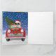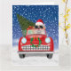 Um presente de Natal bonito para amantes de cães, dirigir um carro vermelho na neve é uma ideia perfeita para alguém que ama cachorros.