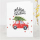 Cartão Carro vermelho feliz Natal com árvore de Natal