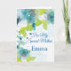Imaginem este cartão de aniversário floral impresso com aspecto aquoso, aberto pela vossa mãe especial com o seu nome personalizado. Tonalidades de Blues & Greens em um fundo branco nítido. Saudação ao dentro impresso.