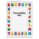 Personalize com o seu texto. Desenho original de alfabeto com letras multicoloridas e em negrito para escola, casa e escritório.