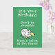 A ilustração de desenho de design de ovelha faz disso um cartão de aniversário divertido. Slogan diz "não seja absurdo, beba uma bebida no baaa!".