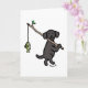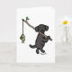 Cartão de Cartoon de Pesca Black Labrador para Proprietários de Labrador. Design de desenho animado para cães giro e feliz apresentando Black Lab gostando de pescar. Boa ideia para aqueles que amam a pesca e os Black Labs. Adicione um toque humorístico. Criada por Naomi Ochiai.