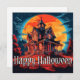 Esta placa apresenta uma moradia sinistra sob a luz da lua. Sinta-se à vontade para editar o texto para tornar este cartão de Dia das Bruxas pessoal e de algum tipo.