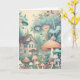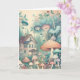 Cartão em branco. Uma arte de IA em aquarela representando uma vila encantada de núcleo de casa com árvores, cogumelos e uma pequena casa.