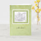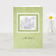 Este cartão de Casa Nova com Telhado de Telhas apresenta uma vinheta esboçada de uma casa com telhado de telhas sobre um fundo de papel washi japonês e diz: “Nova Casa?” A parte interna diz: “Parabéns!”