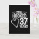 Esta divertida design do 37º aniversário de casamento é perfeita para casais de pesca que estão casados há 37 anos e ainda estão viciados um no outro e adoram ir pescar! Excelente para uma festa do 37º aniversário de casamento para celebrar 37 anos de casamento! Apresenta a citação de 37 anos de aniversário de casamento "ainda viciada após 37 anos" com ganchos de peixe em forma de coração com gráfico de pesca em um design de estilo de safra angustiado.