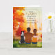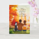 Que o calor do sol da colheita brilhe no seu aniversário de casamento de outono. Linda cor-de-água sazonal de um cenário de parque com árvores de queda e paleta colorida para disparar um doce casal sentado com seu cachorro.