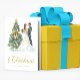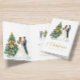 Este cartão de saudação festivo apresenta aquarelas de um casal de casamento que fica em pé de uma árvore de Natal, e tipografia de ouro com texto personalizável.