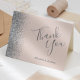 Este elegante e moderno cartões de agradecimentos de casamento mostra uma borda de cintilação prateada em um fundo cor-de-rosa. O texto personalizável combina as palavras "Obrigado" no roteiro de escrita de cinzas e os nomes da noiva e noiva em itálico.