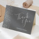 Este elegante cartões de agradecimentos de casamento moderno apresenta uma borda de cintilação de prata em um fundo de cinza. O texto personalizável combina as palavras "Obrigado" no guião da cinza prateada e os nomes da noiva e do noivo em itálico.