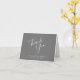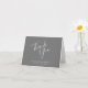 Este elegante e moderado cartões de agradecimentos de casamento minimalista apresenta um guião de escrita na moda em branco sobre uma cinza. Adicione os nomes dos casais e a data do casamento na fonte sans serif.
