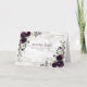 Moderno, elegante e moderno, este design de casamento de fotos apresenta cor d'água eucalipto verde com arranjos florais roxos ricos de ameixa e poeira dourada falso sobre uma textura de mármore branco falso, com texto em uma cor roxa correspondente. Sua mensagem de obrigados é um dentro personalizado, e o dentro de cima permite que você adicione sua foto de casamento favorita. Parte de um jogo de casamento. Convidados Elegantes de Direitos Autorais. Todos os direitos reservados.