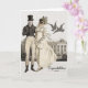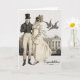 Um cartão de casamento de Jane Austen, Orgulho e Preconceito, com Elizabeth Bennet e Sr. Darcy. Também é apenas um lindo cartão de casamento ou aniversário sem a conexão com Jane Austen. Um casal da Regência posa do lado de fora de sua casa.