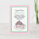 Bonito carta de casamento rosa e verde com um pedaço de bolo de casamento com rosas, flores e uma borboleta.