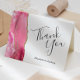 Este elegante e moderno cartões de agradecimentos de casamento apresenta uma coloração aquosa rosa e borda agitada, aparada com uma falsa brilha de ouro. O texto personalizável combina as palavras "Obrigado" no roteiro de escrita manual de cinzas de carvão e os nomes da noiva e noiva em itálico em fundo branco.