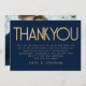 Texto minimalista Marinho azul e Dourado casamento Obrigado Disponível digitalmente e impresso. Um simples design tipográfico, totalmente personalizável, em preto e branco para obrigado de seus convidados. Substitua o exemplo de foto no verso por seu favorito. Você também pode alterar as cores do texto e do plano de fundo se desejar, por meio da opção personalizar mais para corresponder ao seu tema de cor do casamento.