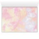 Traços de água magenta, cor-de-rosa, amarela e dourada, de fibra branca, que dizem "Bright Summer Tropical Sunset", acentuados com uma camada floral branca de Hollyhock.
