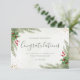 Celebre o feliz casal com este cartão de casamento elegante e festivo. Apresentando uma bela ilustração aquática de verde de inverno, bagas e brilho dourado, esta carta é perfeita para um casamento no inverno ou uma celebração de férias. Personalize o cartão com nomes e uma mensagem sincera para expressar seus parabéns e desejos. Este cartão é certamente um guardião apreciado para os recém-casados.