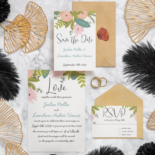 Cartão Casamento tema damasco de Chartreuse Turquoise Mod