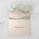 Bandas de casamentos em uma concha com flores e rede em moldura abstrato de coração sobre fundo cor-de-água rosa e verde. O texto é editável.