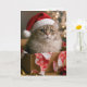 A fluffy cat wearing a Santa hat relaxes in a torn-open gift box, surrounded by a softly blurred backdrop of festive lights that enhance the holiday spirit.