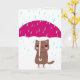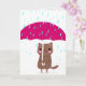 Gato de desenho animado com guarda-chuva rosa na chuva para amigo ou familiar.