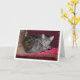 Gato no Cartão de Saudação Red Cushions. Você pode personalizar este produto gratuitamente se quiser adicionar texto ou alterar a cor do plano de fundo.