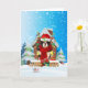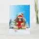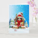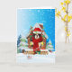 Cartão Cavalier King na neve com presentes de Natal