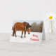 Cartão Cavalo castanho com coroa de Natal