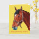 Pintura de um belo cavalo de baía com uma estrela branca vestindo uma coleira de couro. A mensagem diz "Parabéns" e você pode inserir o nome de sua escolha. O dentro da mensagem diz 'Aproveite seu dia especial'. Todo texto pode ser alterado para uma mensagem de sua própria escolha.