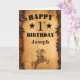 Cartão de Cavalo de Cowboy Ocidental da Rússia primeiro aniversario com nome e idade personalizados. Para mais personalização, clique no botão "Personalizar" e use nossa ferramenta de design para modificar este modelo.