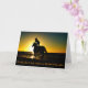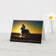 Cartão Cavalo e cavaleiro na praia na silhueta do por do