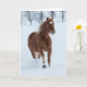 Cartão Cavalo solteiro correndo na neve