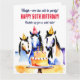 Cartões de festa de aniversário engraçados, feliz aniversário, três cavalos em um chapéu de festa e um bolo, nunca muito velhos para festas