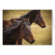 Uma imagem fotográfica colorida de perto de dois cavalos, um no primeiro plano, está em foco, e a que está no fundo está ligeiramente fora de foco para um efeito agradável. Ambos os cavalos são castanhos-escuros que são complementados pelo campo de ouro no fundo. Há uma sensação de terra, rural, a esta imagem e ela está terminada com uma bela vinheta para desenhar o olho na foto. Este produto é personalizável. Escolha seu estilo ou opções para torná-lo da maneira que você quiser.